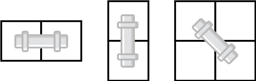 파이프가 가로로 놓여진 경우에 가능한 이동 방법은 총 2가지, 세로로 놓여진 경우에는 2가지, 대각선 방향으로 놓여진 경우에는 3가지가 있다.